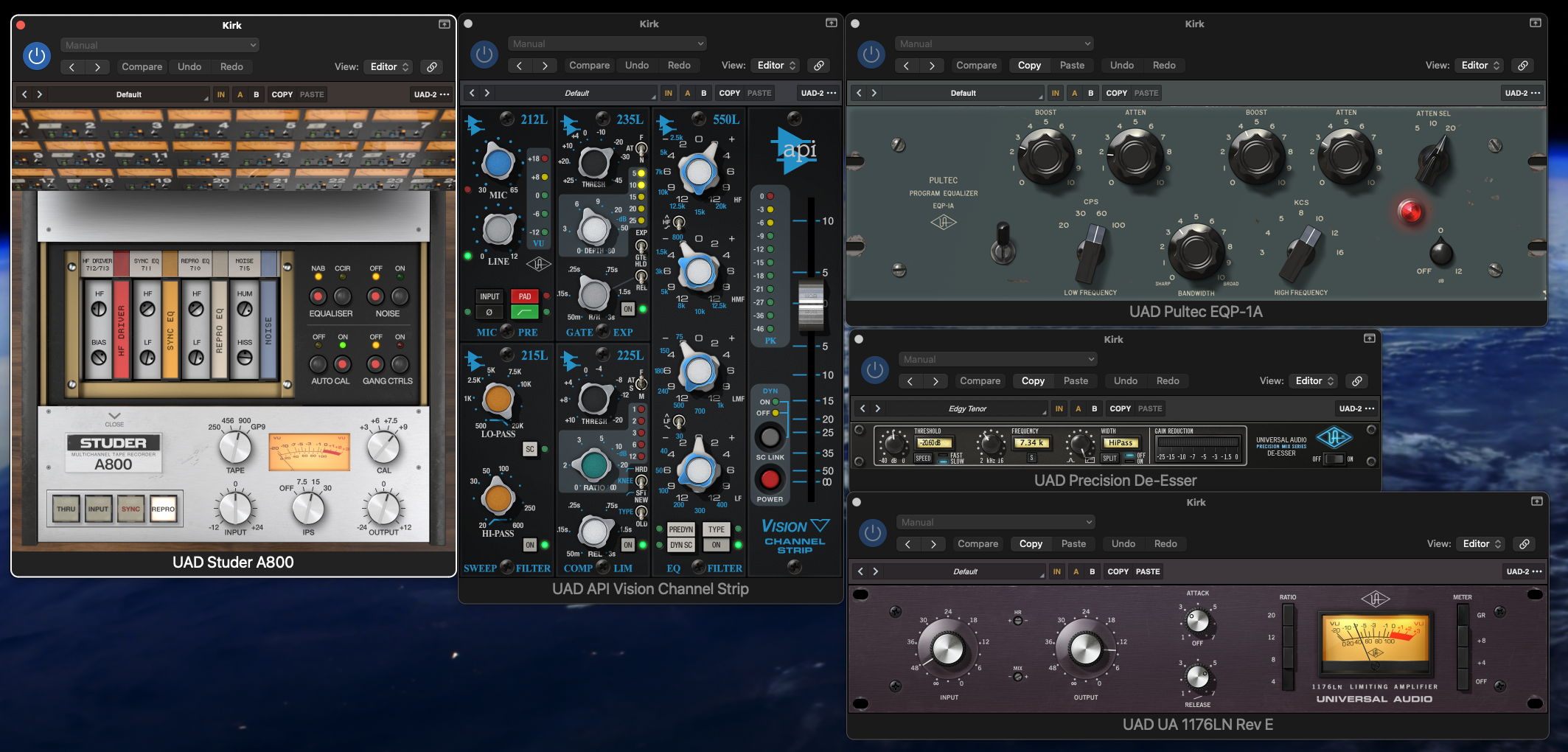 - Various UAD compressor and EQ plugins (1176, Pultec EQ, Manley Massive Passive)